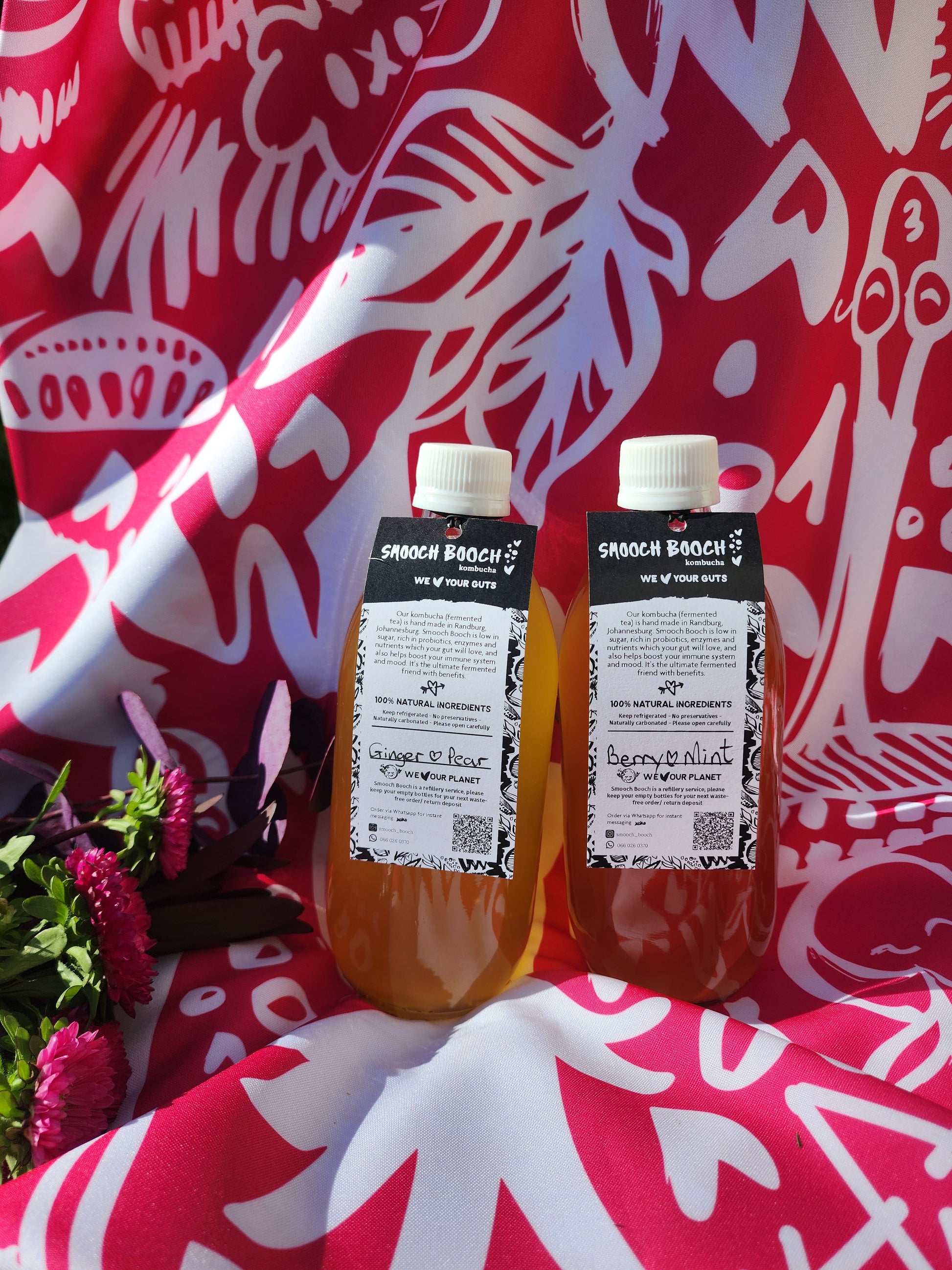 Smooch Booch is hand made in sunny Jozi, using only natural and seasonal ingredients, which means every month you will receive a new flavour! Our booch is also unfiltered, leaving all the gut loving micro-organisms in every bottle.